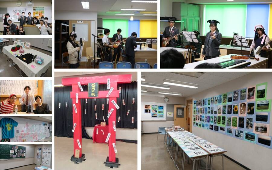 在校生による「ステージ発表🕺」、各学年教室での「作品展示🌸」や催し物「フォトスポット📸」「お化け屋敷👻」「縁日⛩️」、ゼミによる「作品展示🎞️🎨」「音楽LIVE🎸」「ゲーム体験🎮」など、生徒の皆さんは、いつもとは違う学校を思う存分楽しんでいる様子でした😊
